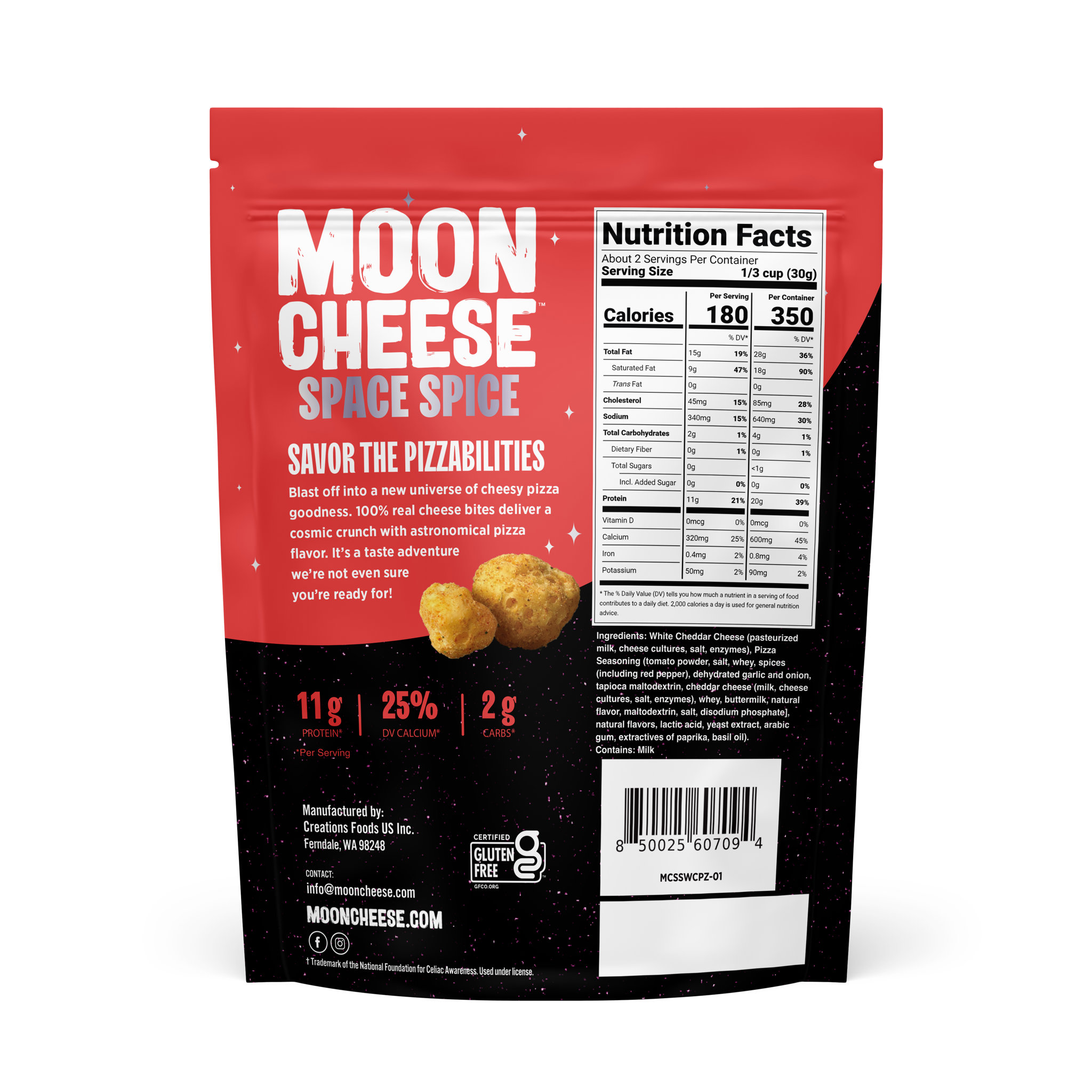 Get ready to blast off into a flavor universe with Moon Cheese Out of This World Pizza Flavor! These crunchy, protein-packed white cheddar bites are loaded with all the rich, savory goodness of your favorite pizza—crispy, cheesy, and topped with a delicious blend of zesty Italian herbs and spices. Each bite delivers an irresistibly bold and savory flavor that will make your taste buds feel like they're in another galaxy. Perfect for snacking, this out-of-this-world pizza flavor gives you the energy you need with every delicious crunch. Elevate your snack game and enjoy the cosmic crunch of Moon Cheese Pizza Flavor today!